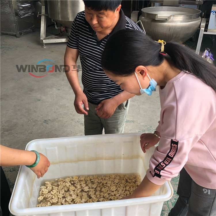 選擇核桃仁去皮機(jī),采用水脫皮,水至柔,不會(huì)破壞核桃仁本身結(jié)構(gòu),保持他原有的結(jié)構(gòu)組織,采用清水去皮,不添加化學(xué)成分,保證核桃仁本身的口感和營(yíng)養(yǎng)成分。清水去皮與藥水去皮的比較的優(yōu)勢(shì)就是,不會(huì)對(duì)核桃仁留有有害物質(zhì),而且,脫完皮后的水可以直接排放。
