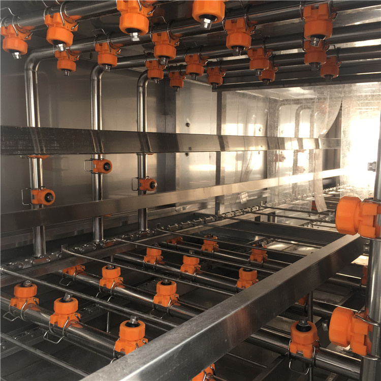 3、噴淋系統(tǒng):清洗噴嘴全覆蓋安裝結(jié)構(gòu),可調(diào)水溫、噴頭可360°球面調(diào)節(jié),無死角清洗。每一個噴嘴及管道都可以達(dá)到無工具拆裝,方便操作工人每班次清理維護(hù)。