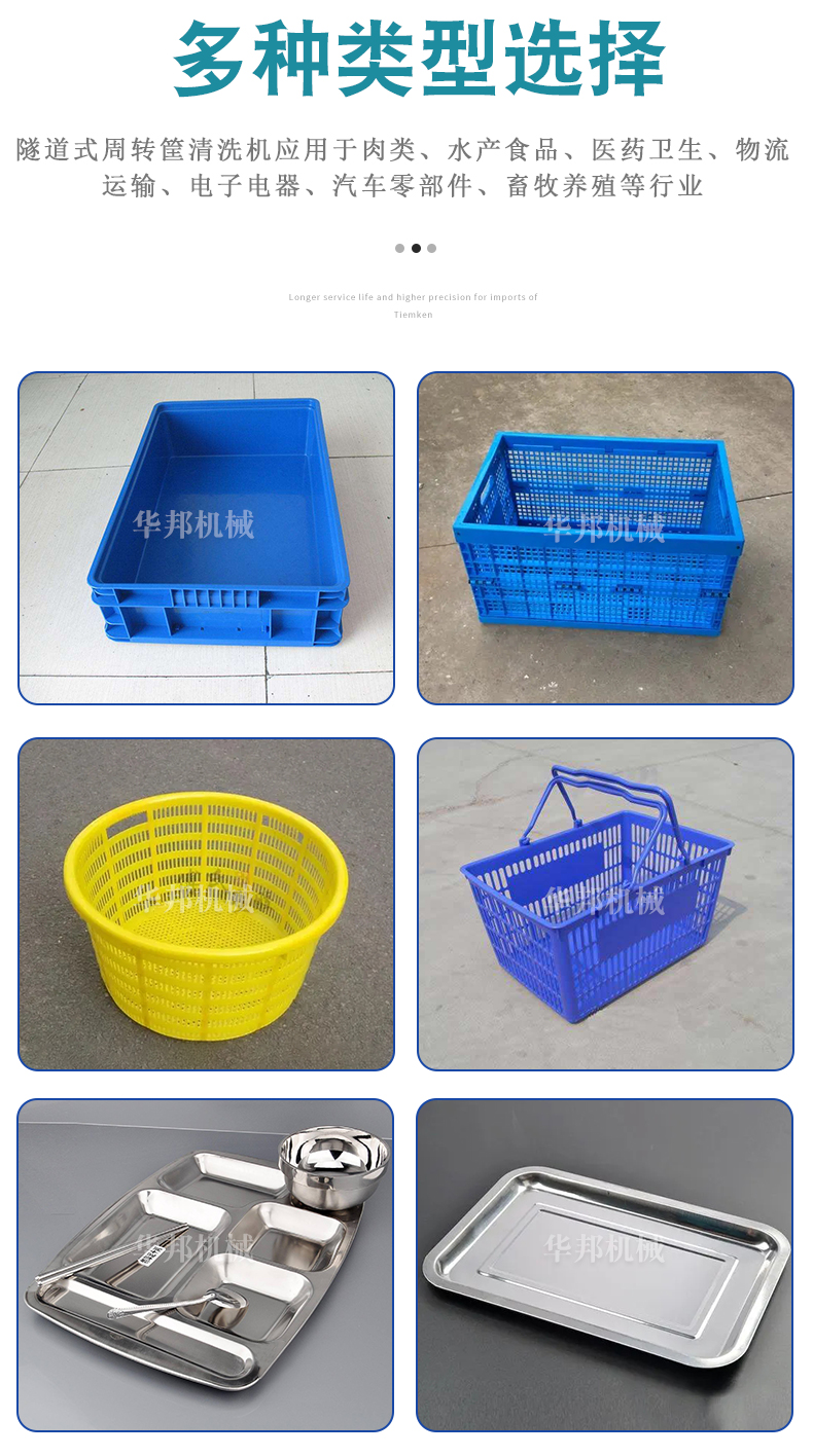 華邦機(jī)械洗筐機(jī)以高壓噴淋沖洗為主要的清洗方式,依次進(jìn)行預(yù)洗、高壓清洗、漂洗,將筐子清洗干凈。采用連續(xù)式清洗,以提高清洗效果,經(jīng)廣大用戶實(shí)際使用證明,該設(shè)備對(duì)各類筐子清洗效果明顯,清洗能力大,去污效果好,節(jié)能節(jié)水,大大提高了清洗效率,降低了清洗成本。