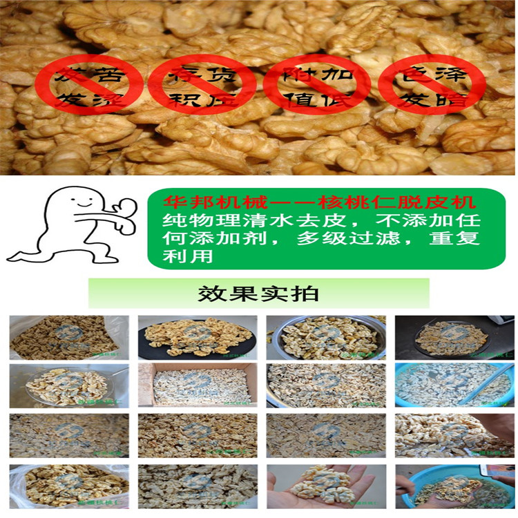 華邦機(jī)械的核桃仁去皮機(jī)去皮效果好,干凈!用二次清洗后,再用烘干機(jī)進(jìn)行烘脆,顏色好看,口感不變!